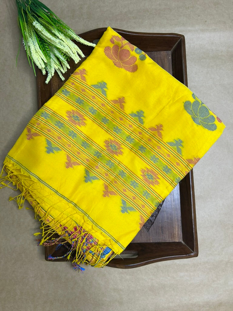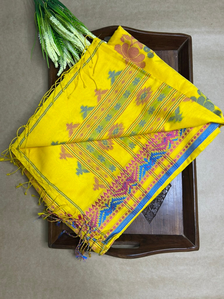 A luxurious handwoven treasure from Bengal, known for its fine muslin texture and exquisite, intricate motifs.
